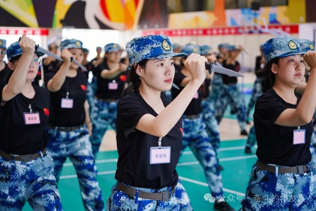 隨著軍訓(xùn)的深入,學(xué)生們學(xué)習(xí)了軍體拳和匕首操。這些訓(xùn)練項目不僅要求學(xué)生們展現(xiàn)出力量,更要求他們掌握技巧和節(jié)奏。軍體拳訓(xùn)練,每一次出拳、每一次跨步,都是對自我控制力的挑戰(zhàn);匕首操方陣,新人們橫砍豎削,所向披靡,都體現(xiàn)出沖鋒陷陣的果敢豪氣。
