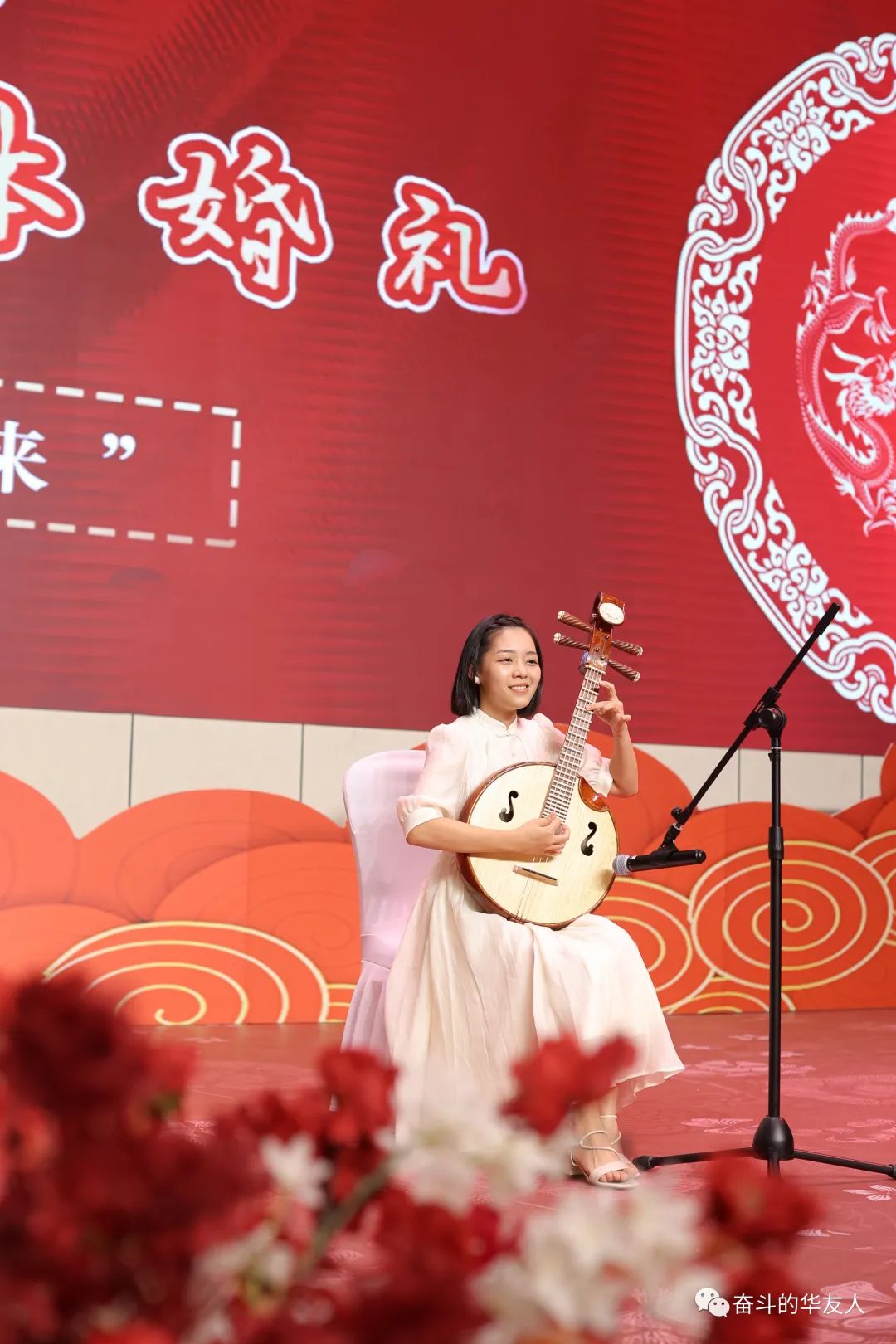 “從此刻起,你們正式成為結(jié)發(fā)夫妻,禮成!”儀式結(jié)束也把氛圍推到了沸點(diǎn)。大家紛紛摩拳擦掌想上臺為新人送上祝福,這邊2022屆大學(xué)生代表秦碧徽和她的男朋友姚云飛為新人獻(xiàn)上了一曲中阮彈唱,祝福新人幸福天長地久。那邊新娘閆寧寧一首《約定》唱出了愿得一人心、白首不相離的相約。臺上還進(jìn)行了投壺、花開富貴等游戲。