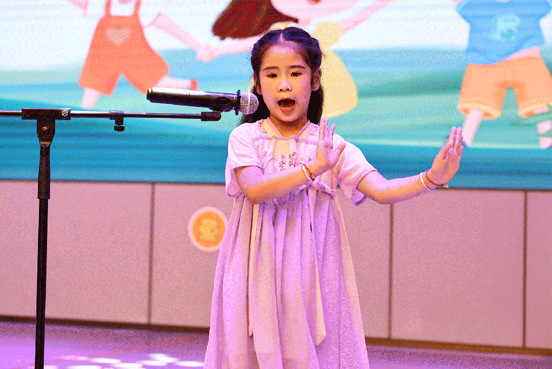 活動伊始,幾位小朋友輪番上臺表演,有古典美的胭脂妝表演、有氣勢恢宏的“踏山河”歌唱、有可愛的小豬吃飽飽的表演,亦有古箏和陶笛的樂器展示等等,自信的向在場所有嘉賓展示自己的才藝。現場觀看表演的家長們相機聲、掌聲響成一片。