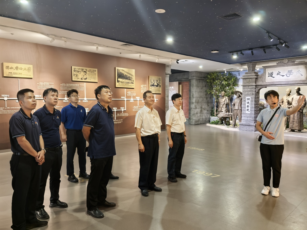 在廣西大學黨委常委、黨委組織部部長王祥高,以及相關學院負責人的帶領下,華友調研組參觀了西大校史館,通過百年辦學史觸摸西大精神內核,探尋“勤懇樸誠,厚學致新”校訓與華友企業文化的契合點。