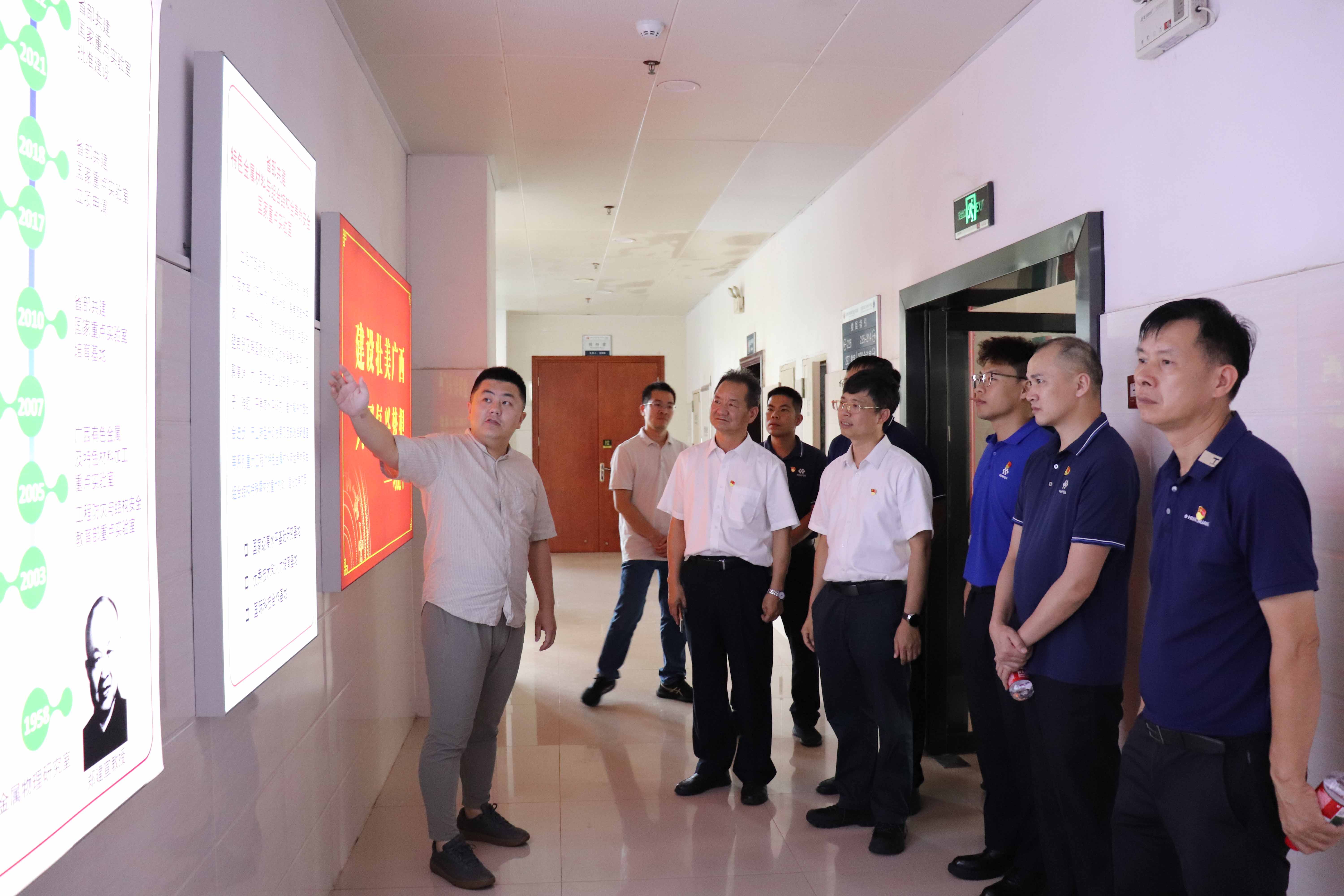 隨后,調研組走進資源環境與材料學院重點實驗平臺和化學化工學院廣西電化學能源材料重點實驗室,實地考察學??蒲性O施及最新研究成果。
