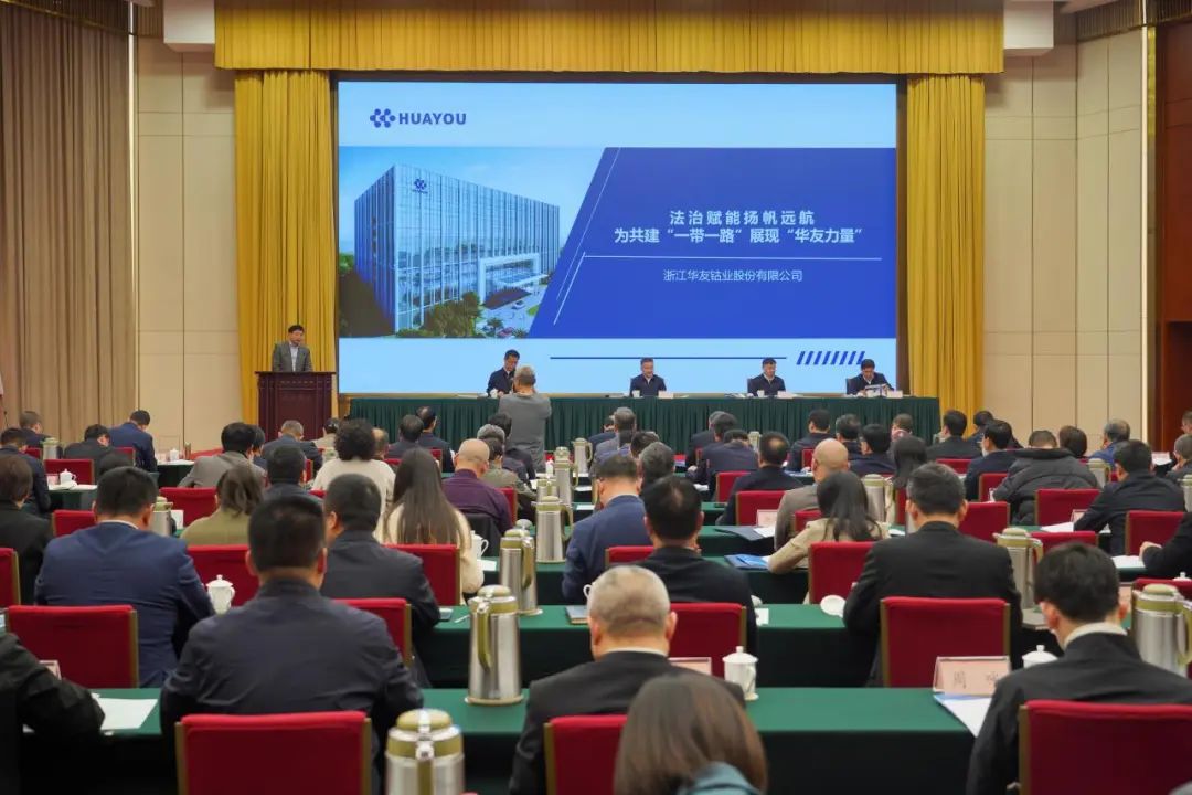 會議旨在總結交流浙江涉外法治工作,分析當前形勢,部署下階段重點任務。方啟學在會上發表了題為《法治賦能揚帆遠航 為共建“一帶一路” 展現 “華友力量”》的演講,展現了華友在涉外法治領域的積極探索與實踐。