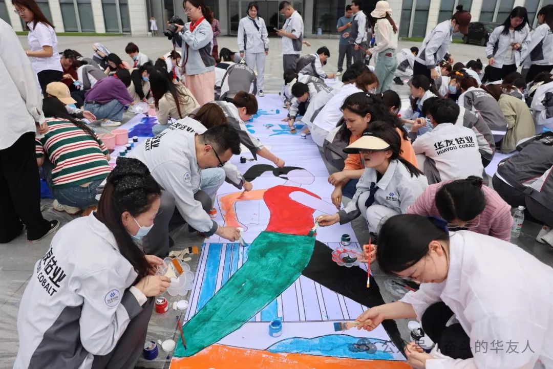 隨著畫布的鋪開,第二個項目開始?;顒又校蠹夷闷鹗种械漠嫻P,端起五顏六色的顏料,在畫布上恣意揮灑著自己的熱愛與赤誠。通過近1小時的共同創作、潛心描繪,巨畫逐步完成,每一筆都體現出華友人的風采與魅力,每個人都是這幅巨畫誕生過程中不可或缺的一環。