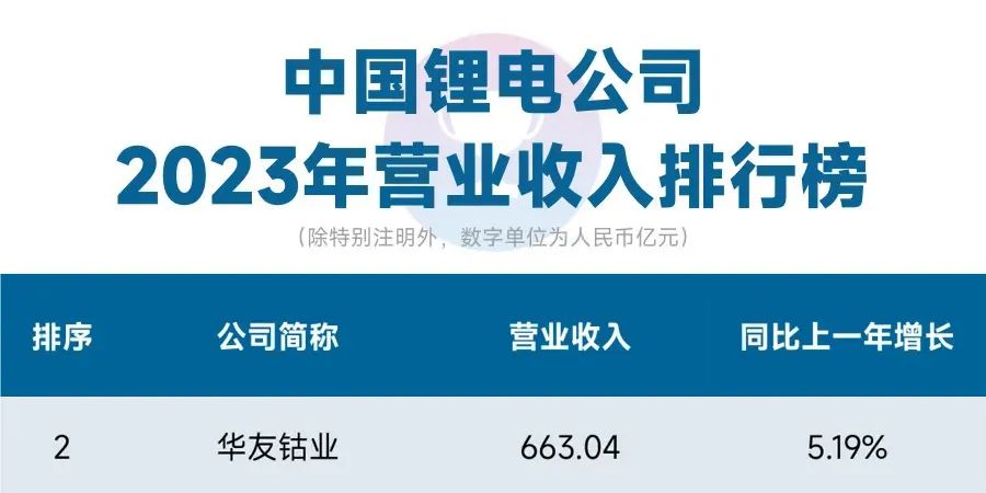 近期,24潮產業研究院(TTIR)根據國內111家鋰電上市/IPO公司最新年報(2023年財報)中營收、預收款、歸母凈利潤、對外投資、經營與籌資現金流等不同維度數據發布了十大排行榜。在2023年中國鋰電加速產業洗牌與博弈進程中,華友鈷業迎難而上、破難而進,以663.04億的營收和33.51億的凈利潤,分別位列相應榜單的第二和第八位,其它維度數據亦位居前列。