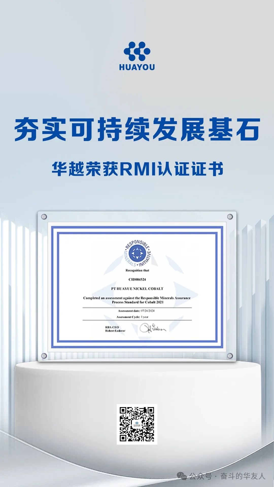 夯實(shí)可持續(xù)發(fā)展基石 | 華越公司獲負(fù)責(zé)任礦產(chǎn)倡議認(rèn)證