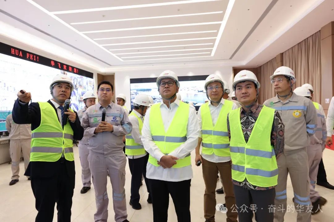 Rosan部長一行先后參觀了華飛項目的控制中心、高壓酸浸車間及華能項目的展廳、質量檢測中心、主控中心和生產車間,詳細了解了華友印尼緯達貝鋰電材料產業一體化綠色制造基地各項目的工藝流程、技術應用、生產規模、產能產量等最新進展以及ESG建設等方面的情況。
