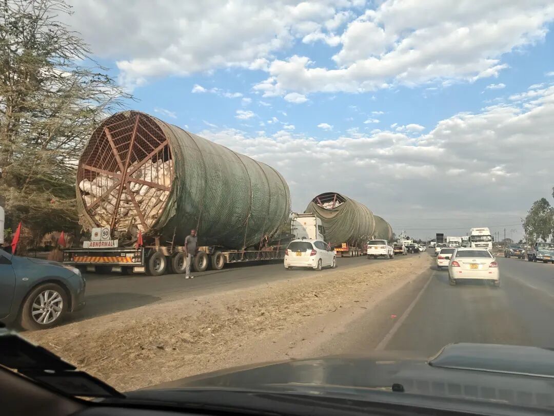 而這座“巨龍”的誕生之路,布滿荊棘。2025年6月24日,轉(zhuǎn)型窯首吊現(xiàn)場,起重指揮員的哨聲劃破長空。直徑5.6米、長達(dá)110米的轉(zhuǎn)型窯被切割成11段,歷經(jīng)三個月的海上漂泊才運(yùn)抵現(xiàn)場。“那艘船中途接到臨時任務(wù),在海上多漂了兩個月。這種完全不可控的物流是我們項目建設(shè)中的‘頭號大敵’”鋰鹽項目部副總經(jīng)理苦笑著搖頭,“我們每天都盯著船舶軌跡圖,心情就像坐過山車。”項目建設(shè)有著復(fù)雜的物流鏈路:從國內(nèi)發(fā)出的貨物經(jīng)過長途海運(yùn),經(jīng)過南非德班港卸貨,完成清關(guān)后,還需再次在津巴邊界進(jìn)行二次通關(guān)。此后,才是更為嚴(yán)峻的、長達(dá)1700公里的陸路運(yùn)輸。“從德班到現(xiàn)場的這1700公里,每一步都充滿變數(shù)。”他補(bǔ)充道,語氣凝重,“車禍、超限運(yùn)輸?shù)膶徟⒛酥廉?dāng)?shù)貜?fù)雜的人文環(huán)境,任何一環(huán)出現(xiàn)意外,都可能導(dǎo)致工期無限期延遲。”